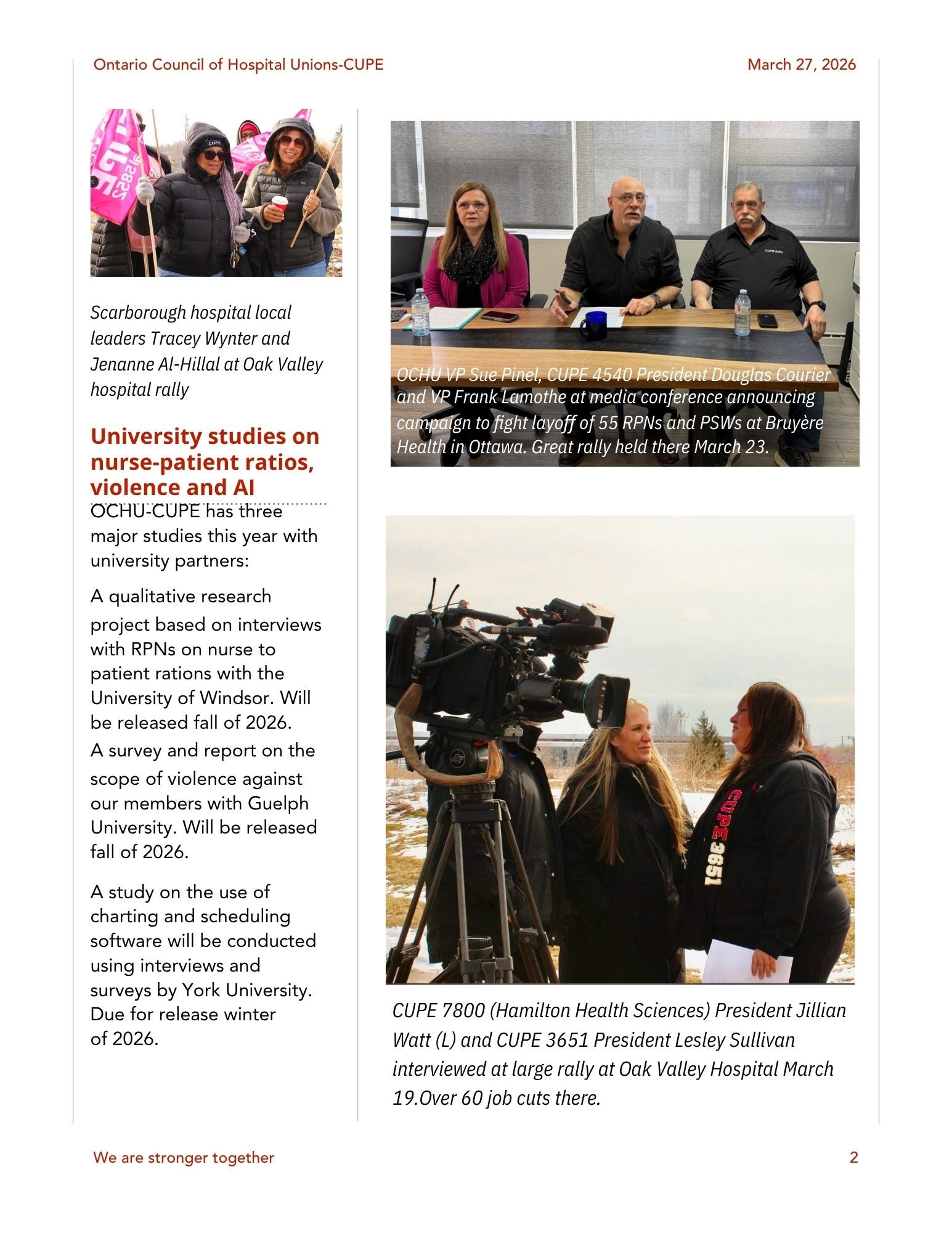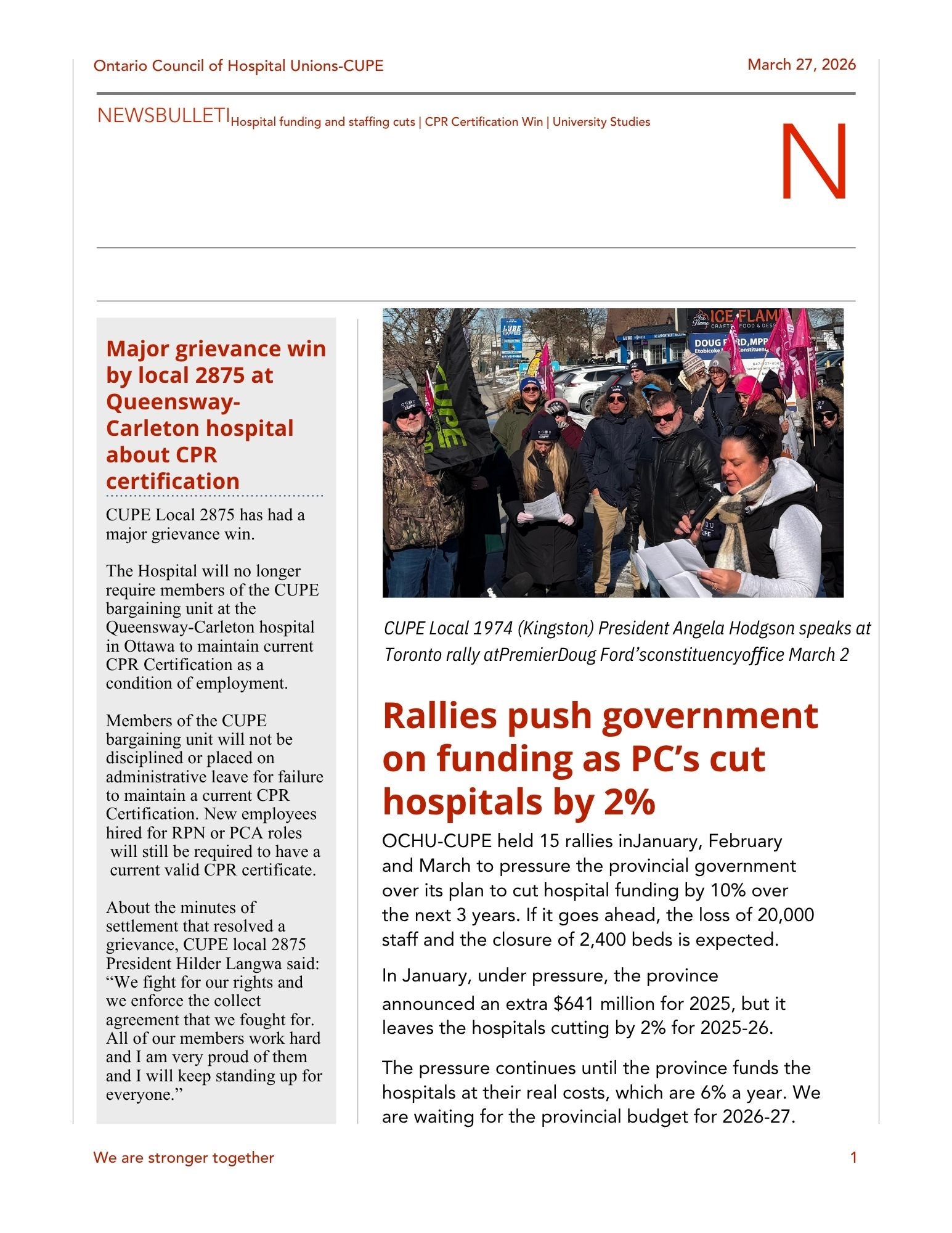 OCHU March 2026 Newsletter