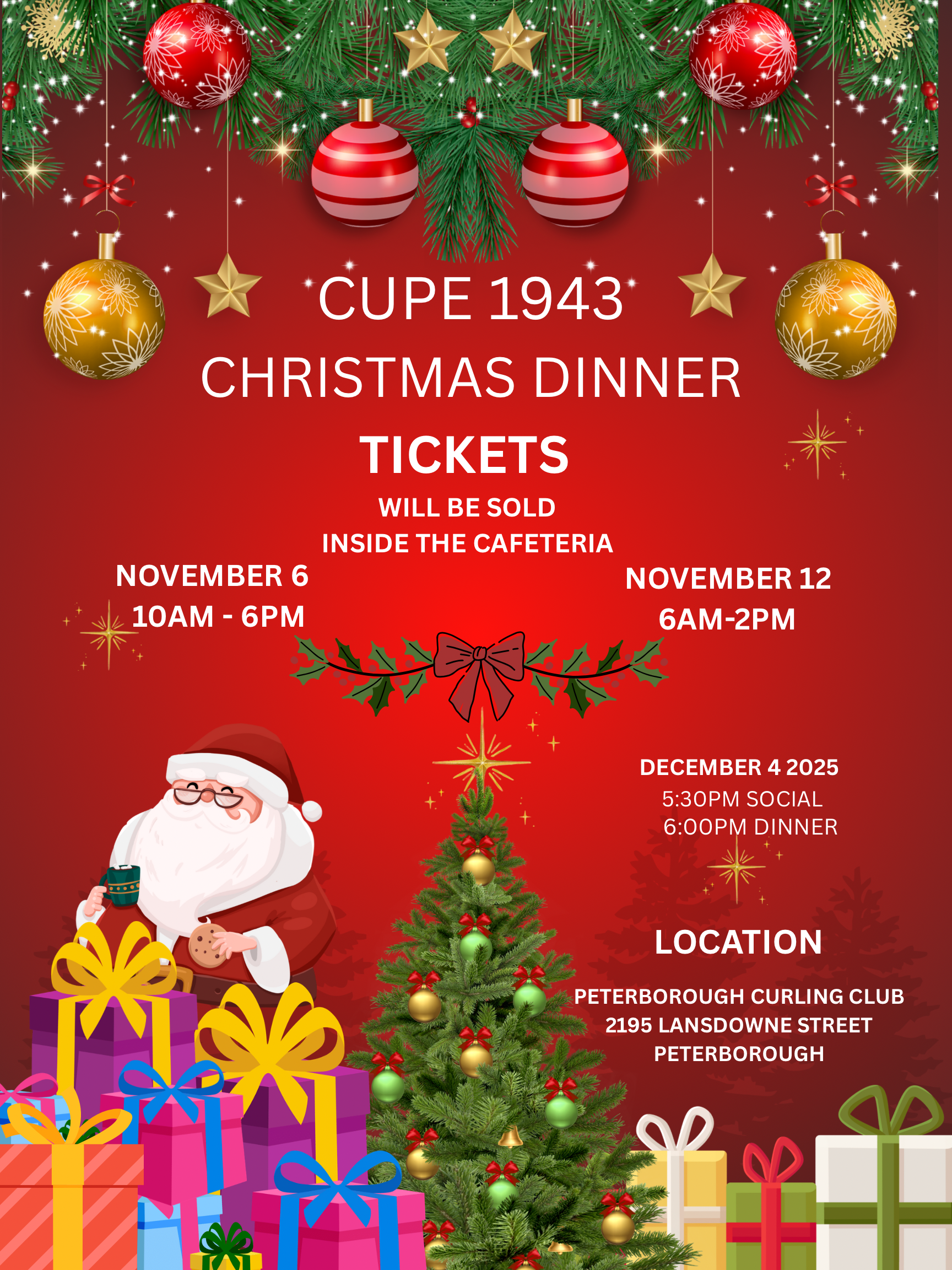 CUPE 1943 is excited to invite all of our members to our Annual Christmas Party.