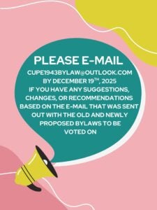 There is a special meeting booked to review and vote on newly proposed bylaws! This is important, it’s how we run the business of the union so bring a coworker and join us!